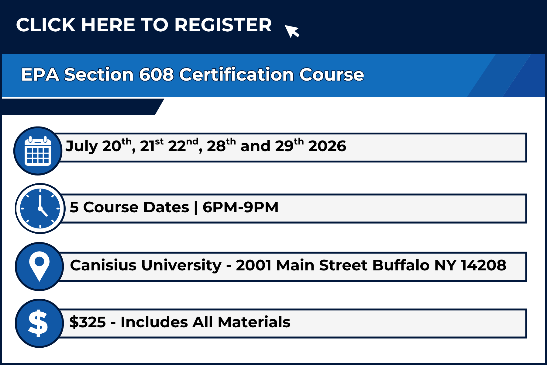 UPCOMING COURSES Stationary Engineering Course & EPA 608 Certification Bundle Available at Checkout – $1575 NOW ENROLLING FOR SUMMER COURSES Contact Us for Financial Assistance Options